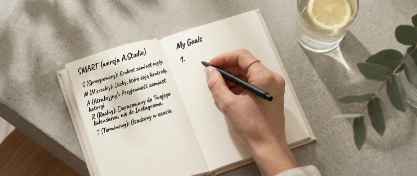 W biznesie metoda SMART to sztywne ramy, które mają dowieźć wynik finansowy. Ale Twoje ciało to nie korporacja. Dlatego w A.Studio wzięliśmy ten skuteczny mechanizm i zmiękczyliśmy go, adaptując do codziennego życia.